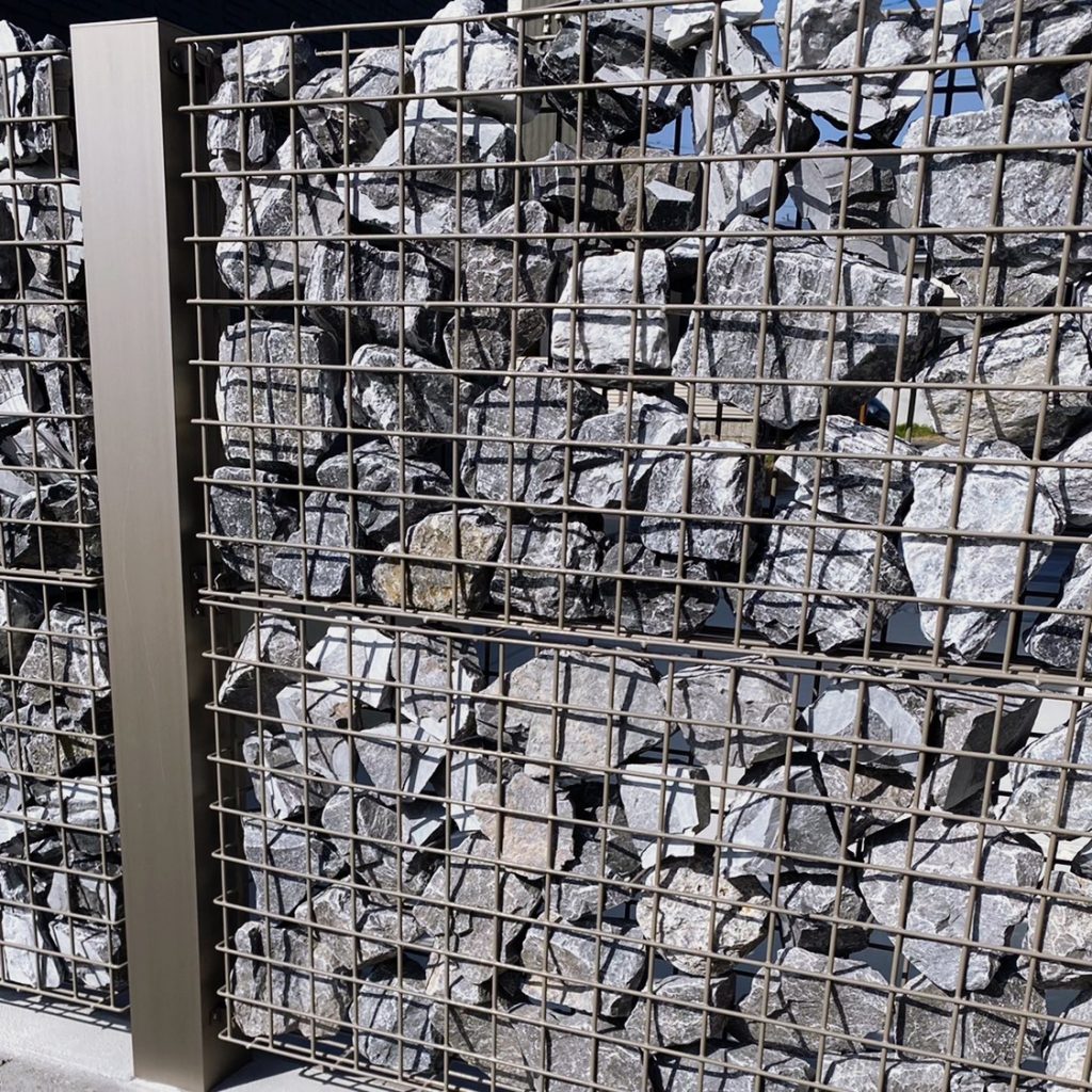 メッシュ状の格子パネルを立体的に組み上げた中に自然石を入れたものです。