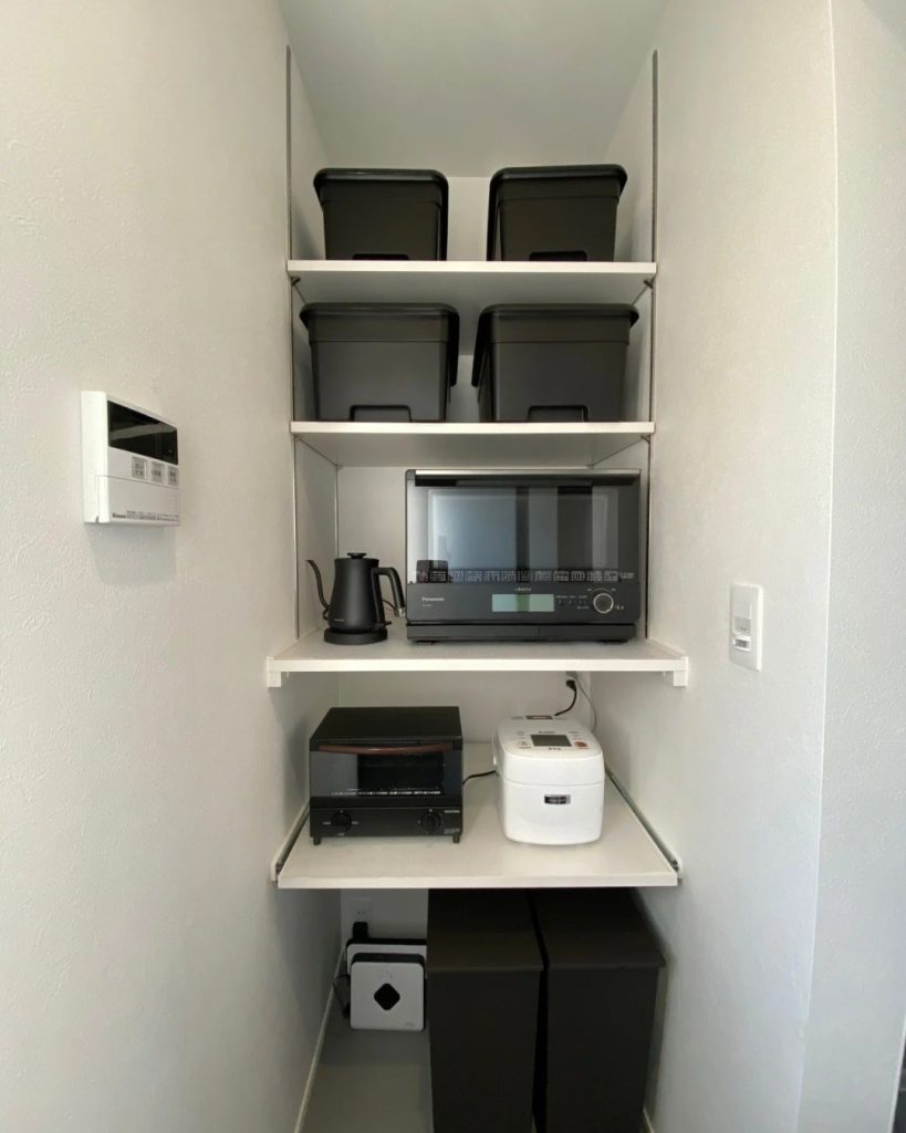 これにより、冷蔵庫が視界からなくなり、おしゃれ度がアップしますよ。