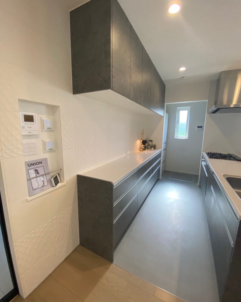 ペニンシュラキッチンをフルフラットに設計すれば、その問題は一気に解決します。