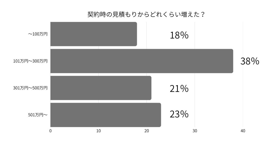 約8割の施主さんが、見積もりから100万円以上増えています。