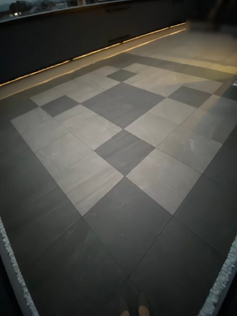 一枚が600×600のタイルになるのですがタイルも極端に小さい箇所もなかったですし、加工する箇所も少なさそうだったのでさすがですね!