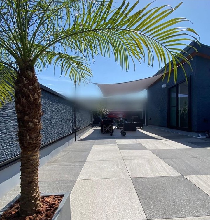 屋外用のソファーや机を置こうと思っている場所はシンプルなイメージにしました。