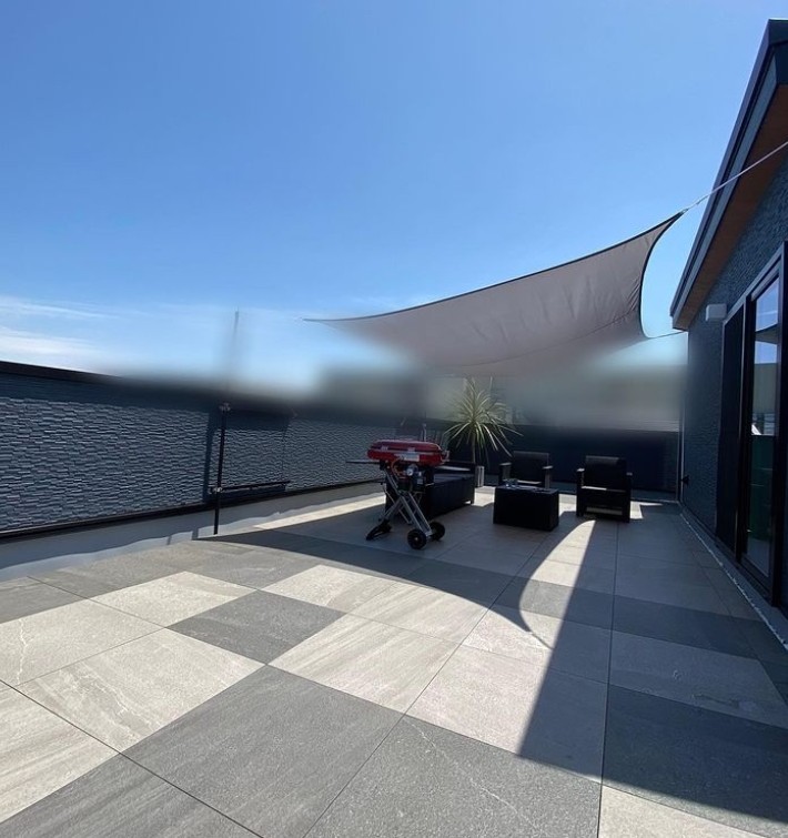 屋上を特別な空間にしたくていろいろこだわりたかったので、屋上のタイル割り付けも自分たちで考えました。