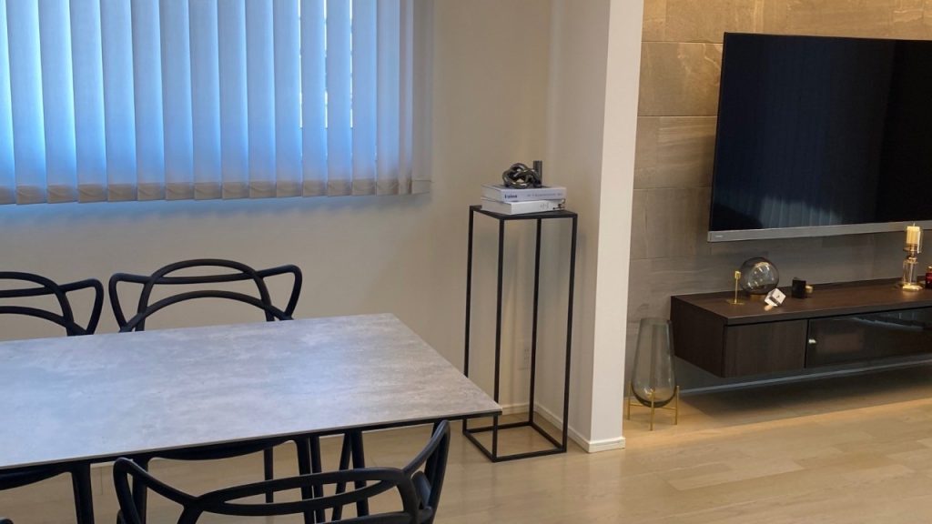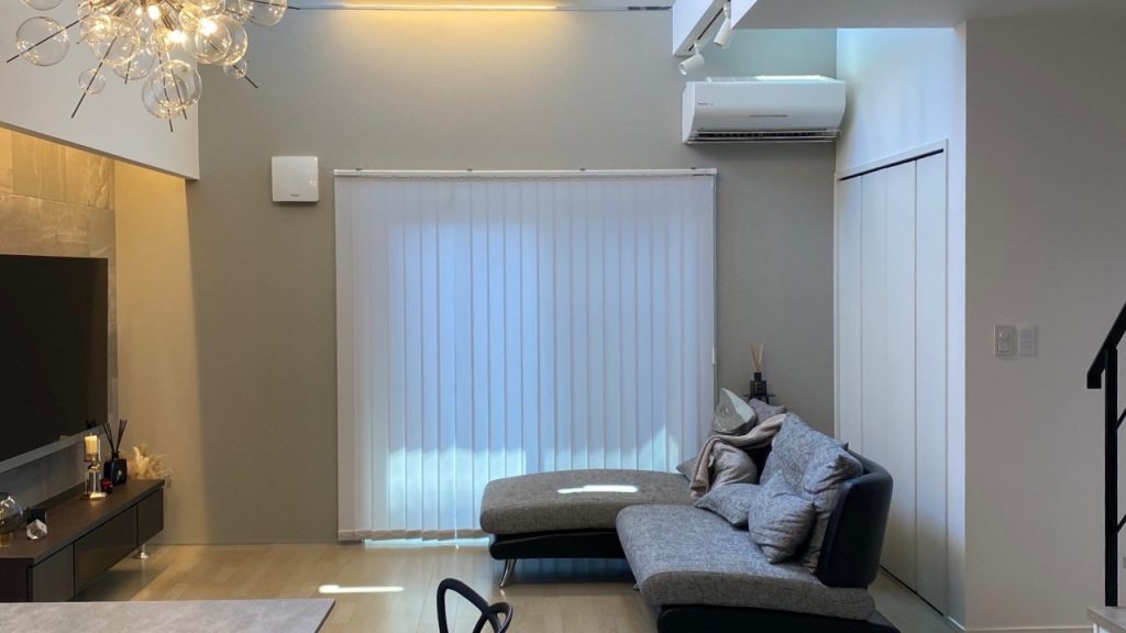 我が家はニチベイのフェスタⅡというバーチカルブラインドを採用していて、直線的でスッキリとした見た目が特徴です。