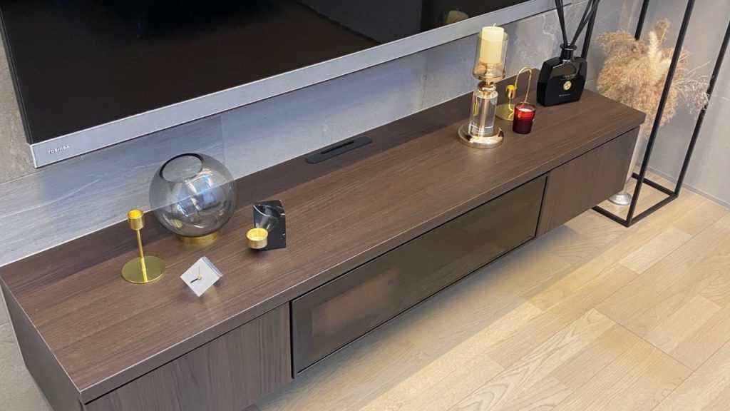 脚付きのソファやテレビボードは、床との間に空間ができることで部屋全体が広く見えます。