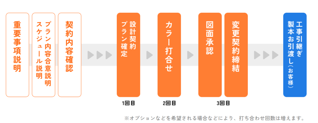 - 打ち合わせ約3回で家づくりが完了